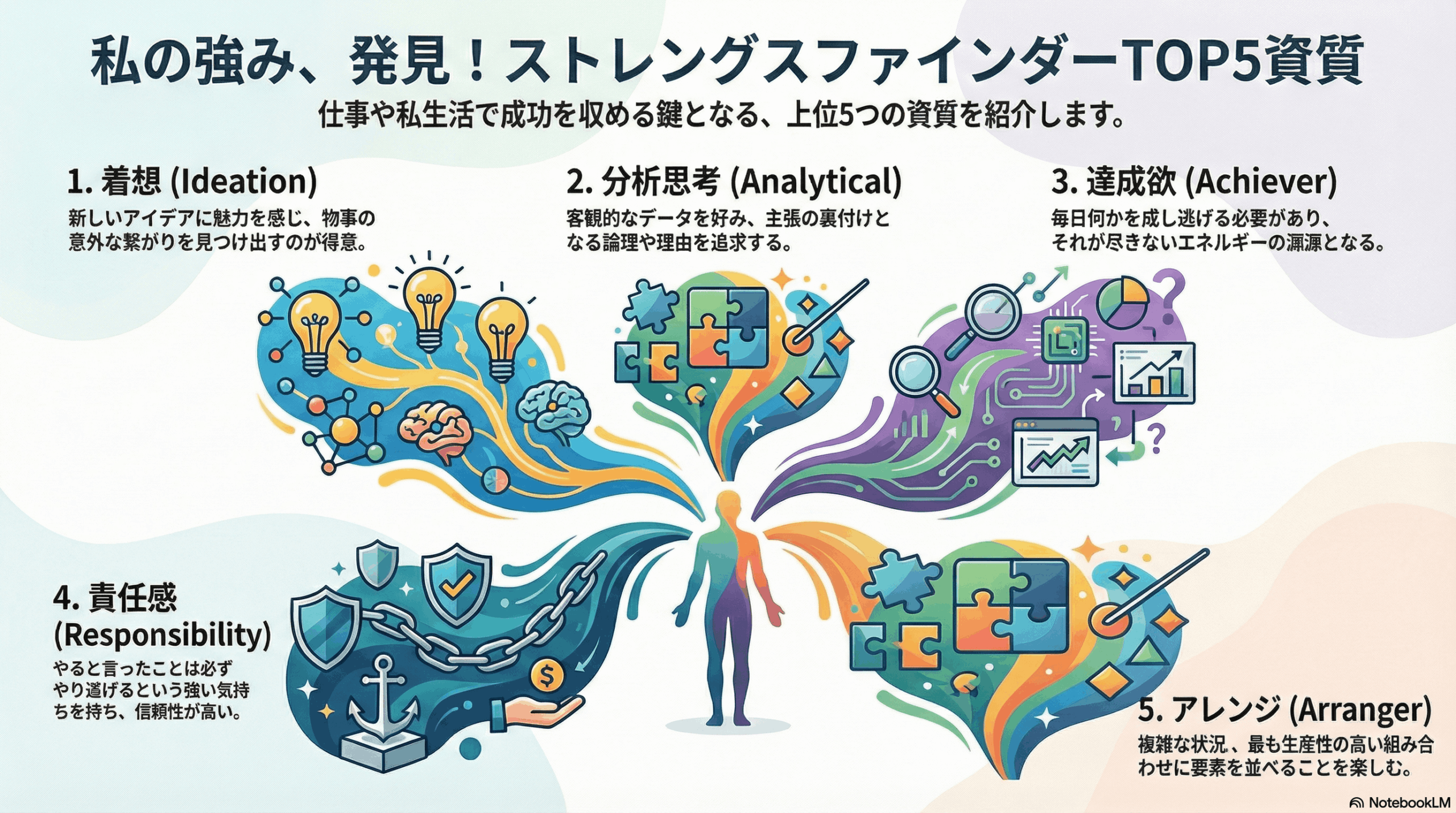 全34項目中、これらの資質があなたの強みの上位5つです。