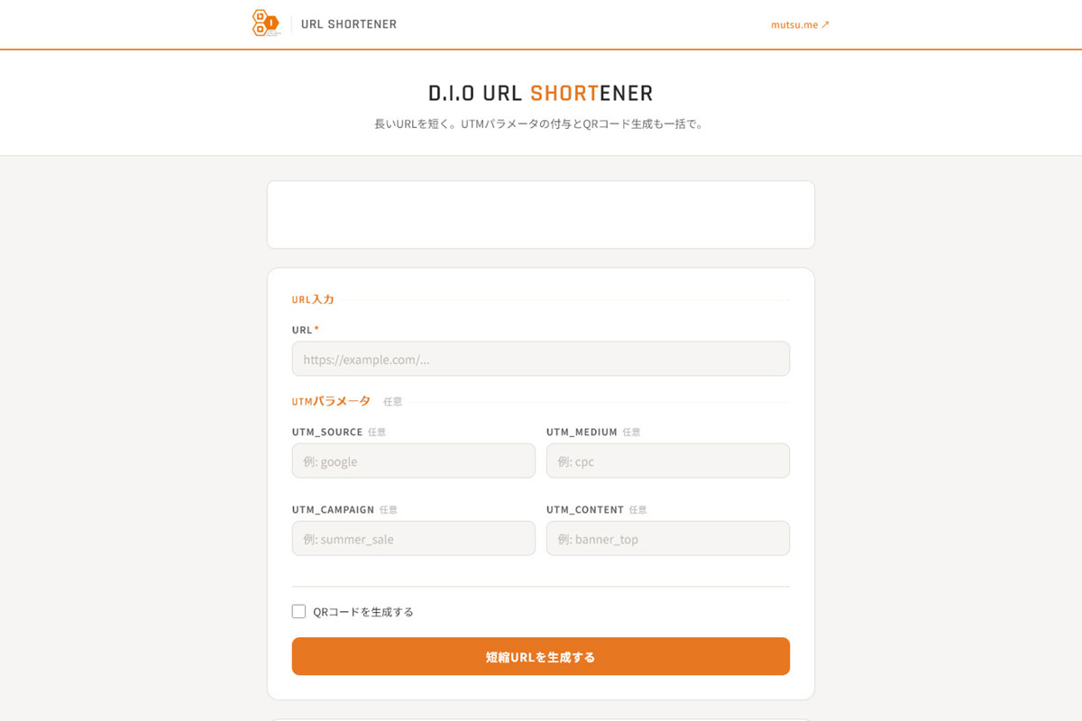 URL短縮サービス「D.I.O URL Shortener」として mutsu.me/shorten/ で公開しています。主な機能は以下の通りです。