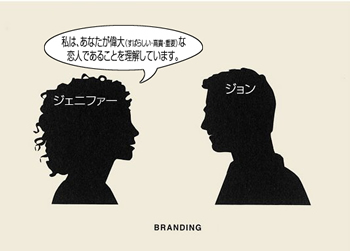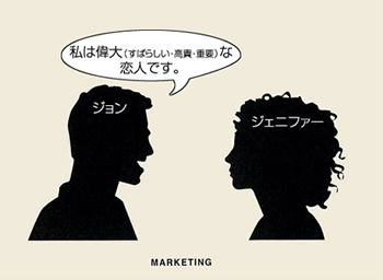 ・ジョン(企業・商品)は自分がどれだけジェニファー(市場・ターゲット層)にとって合っているのか(相性がいい、勝手がいい、便利、安い等)というのを一方的に言ってる
