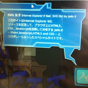 で、このSVGなんですがアニメーション機能があって、Flashで作るような簡単なインタラクティブコンテンツ(要はFlashで作れるユーザーが何かアクションを楽しめるコンテンツ)を作れるみたいで、KAYACさんの「SVG女子」なんかはこれに当たりますかね。
